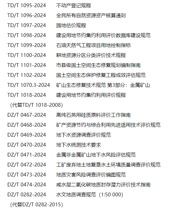 《不動(dòng)產(chǎn)登記規(guī)程》等19項(xiàng)行業(yè)標(biāo)準(zhǔn)已通過(guò)全國(guó)自然資源與國(guó)土空間規(guī)劃標(biāo)準(zhǔn)化技術(shù)委員會(huì)審查,經(jīng)2024年第3次部長(zhǎng)辦公會(huì)審議通過(guò),現(xiàn)予批準(zhǔn)、發(fā)布,自2024年9月1日起實(shí)施。標(biāo)準(zhǔn)編號(hào)及名稱(chēng)如下: