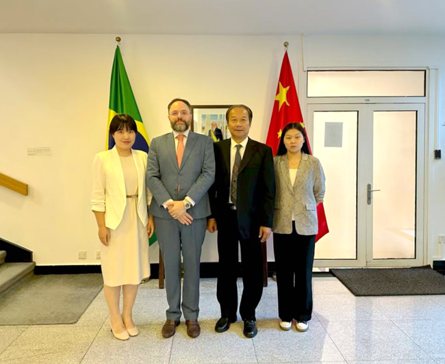 2025年7月29日,中國(guó)礦業(yè)聯(lián)合會(huì)副會(huì)長(zhǎng)吳國(guó)華一行拜訪巴西聯(lián)邦共和國(guó)駐華大使館,與巴西能源和知識(shí)產(chǎn)權(quán)參贊羅德禮(Rodrigo Mendes Araujo)進(jìn)行了友好而富有成效的會(huì)談。雙方就巴西代表團(tuán)參加 2025(第二十七屆)中國(guó)國(guó)際礦業(yè)大會(huì)、中巴礦業(yè)領(lǐng)域深化合作、推動(dòng)兩國(guó)礦業(yè)協(xié)會(huì)組織及企業(yè)之間交流等事宜充分交換了意見(jiàn)。