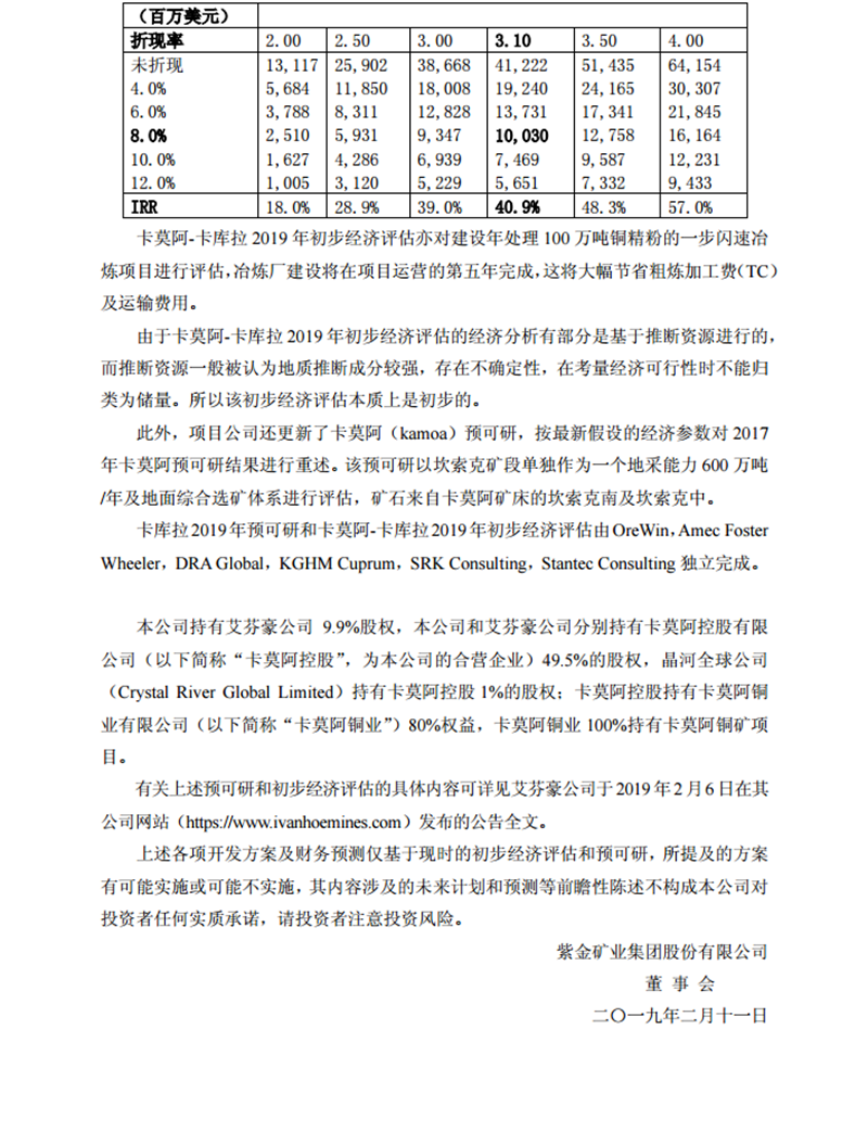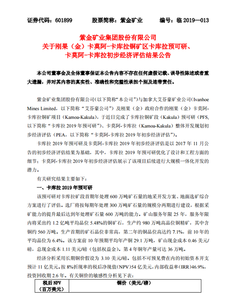 發(fā)表時間 :2019-02-12 來源:紫金礦業(yè)