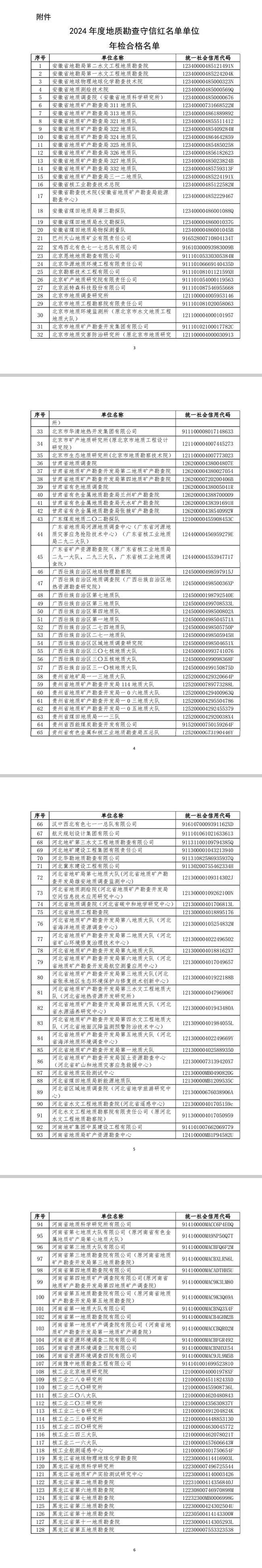 附件:2024年度地質(zhì)勘查守信紅名單單位年檢合格名單
