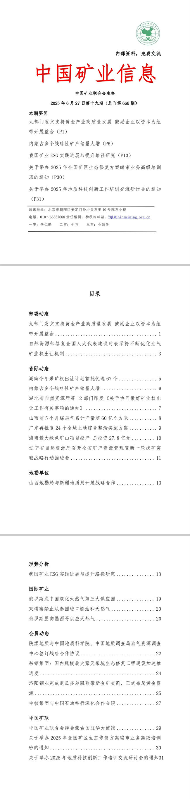 2025年6月23日—6月27日《中國礦業(yè)信息》第十九期(總刊第666期)