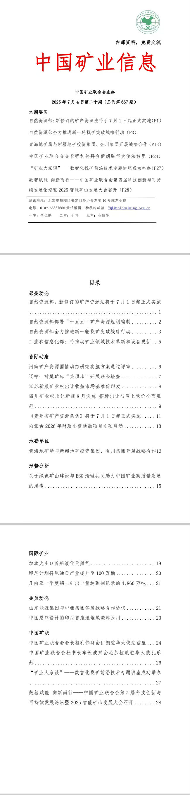 2025年6月30日—7月4日《中國礦業(yè)信息》第二十期(總刊第667期)