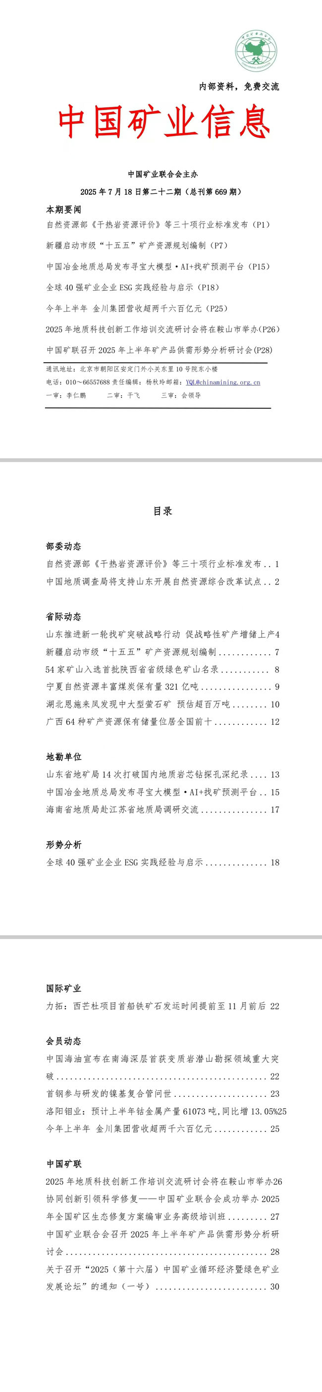 2025年7月14日—7月18日《中國(guó)礦業(yè)信息》第二十二期(總刊第669期)