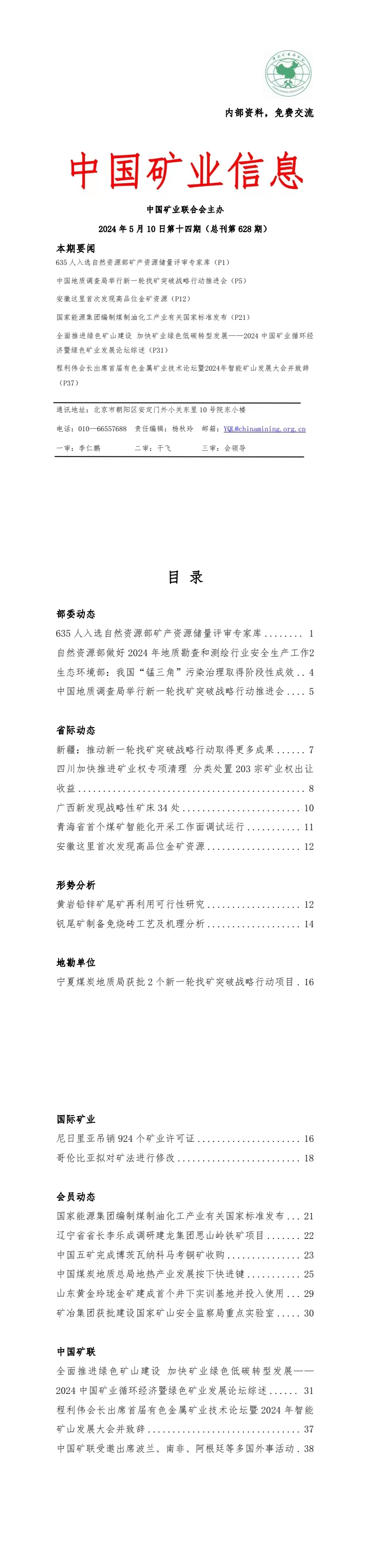 中國(guó)礦業(yè)網(wǎng):2024年5月6日—5月10日《中國(guó)礦業(yè)信息》第十四期