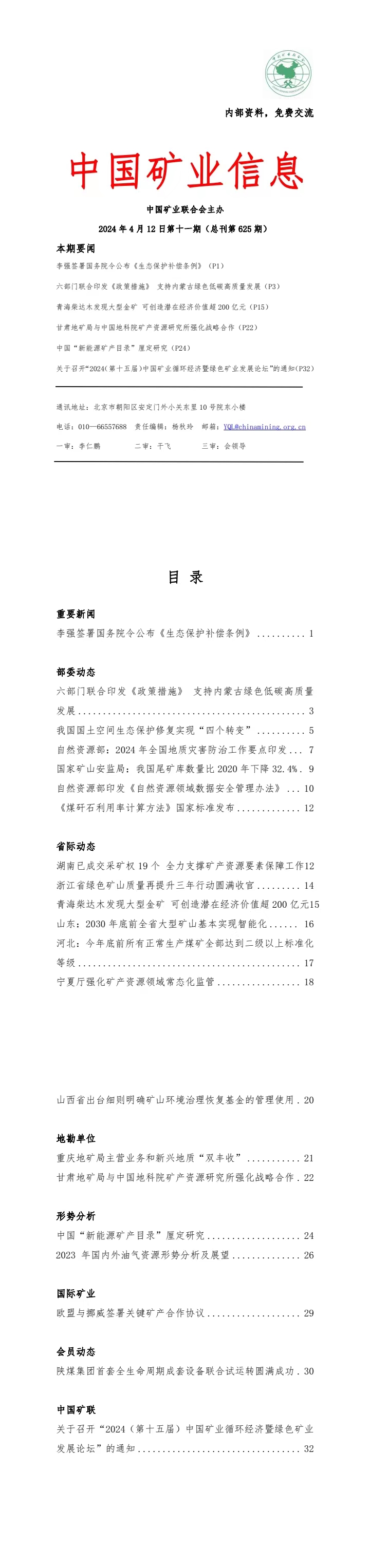 中國礦業(yè)網(wǎng):2024年4月15日—4月19日《中國...