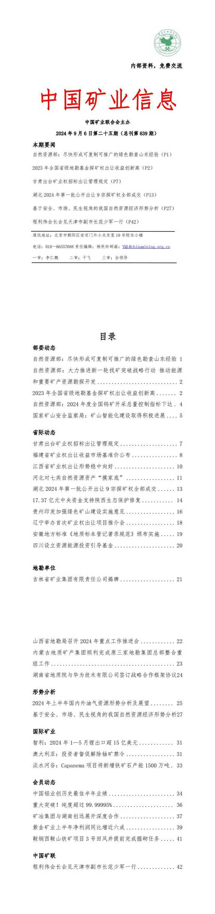 中國(guó)礦業(yè)網(wǎng):2024年9月2日—9月6日《中國(guó)礦業(yè)信息》第二十五期.pdf