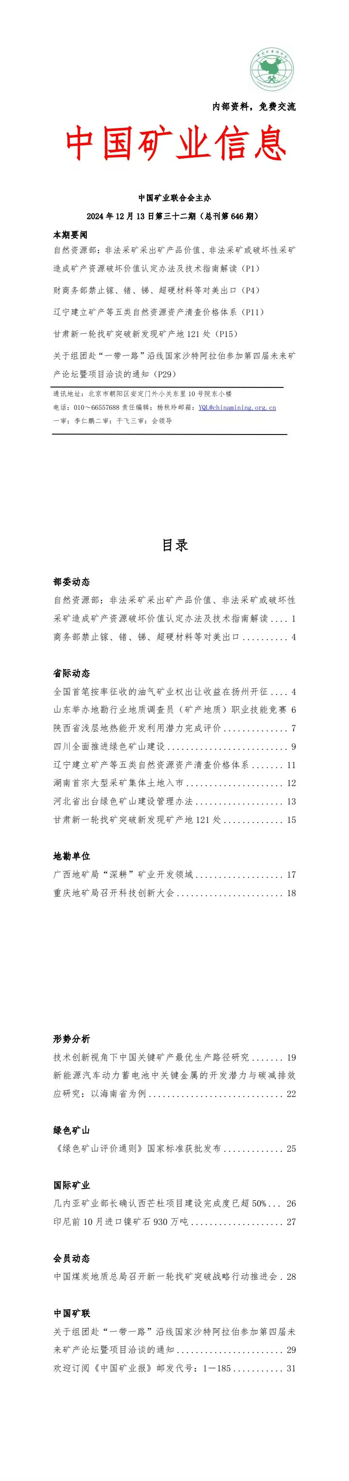 中國礦業(yè)網(wǎng):2024年12月9日—12月13日《中國礦業(yè)信息》第三十二期