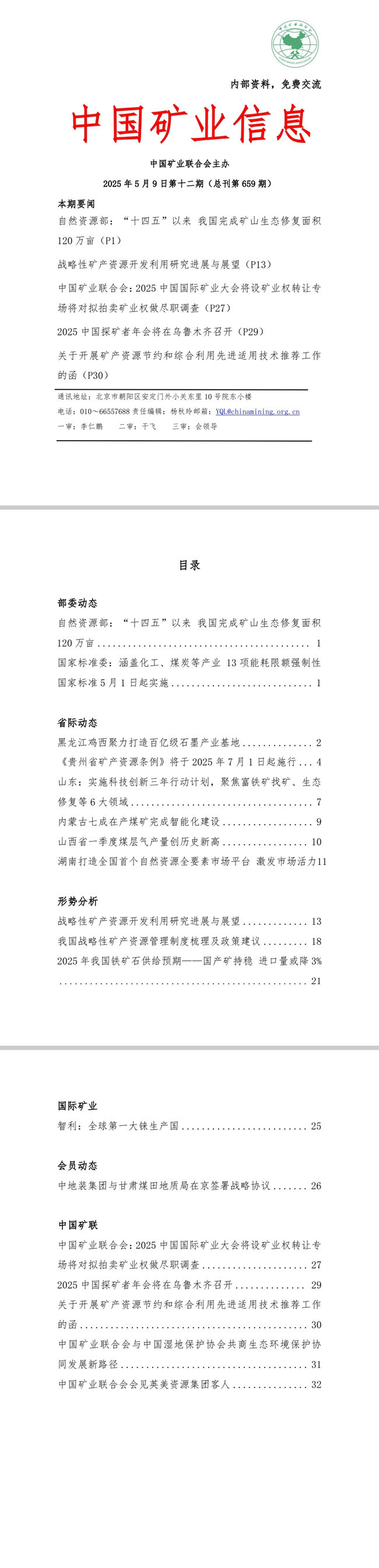 2025年5月5日—5月9日《中國礦業(yè)信息》第十二期(總刊第659期)