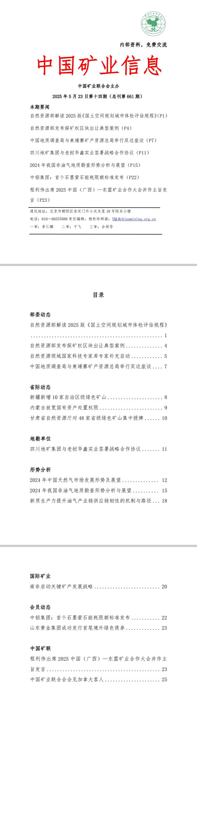 2025年5月19日—5月23日《中國(guó)礦業(yè)信息》第十四期(總刊第661期)