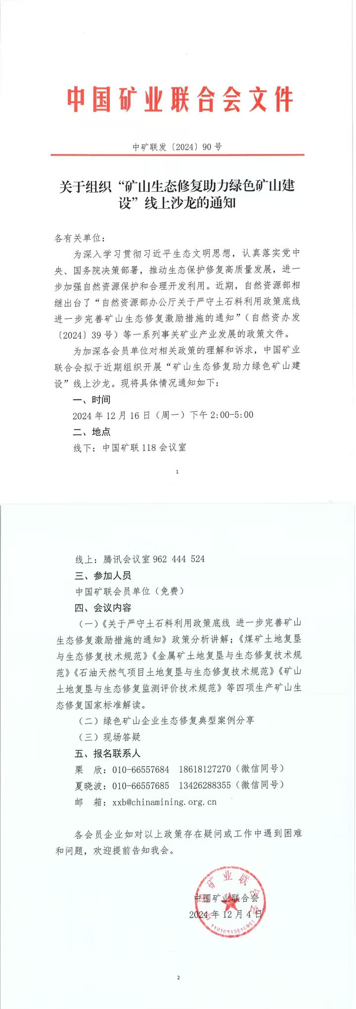中國礦業(yè)聯(lián)合會:關(guān)于組織“礦山生態(tài)修復助力綠色礦山建設”線上沙龍的通知